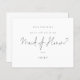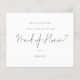 Minimal Black Script Maid of Honour Request. A budget price 4.5” x 5.6” alternative. Available in a SEMI GLOSS 110 lb CARD STOCK which is the default option (thicker for invitations) Envelopes are an optional extra and are slightly larger than the card size. Simple style in classic black and white to ask this all important question. Maid Of Honour is in a stylish set script is in the centre. Text and background colours can be changed if you wish to better suit your wedding theme via the customise further option.