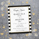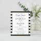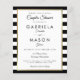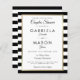 Featuring a classic black and white stripe background, this elegant wedding couples shower budget invitation has a faux gold foil border framing your couples shower details set in modern chic typography. Designed by Thisisnotme©