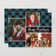 Budget, Elegant, Modern Black and Teal Buffalo Plaid 4 Photo Collage Merry Christmas Holiday Card. This festive, four (4) photo holiday card template features a pretty photo collage, black and teal green or dark turquoise buffalo plaid / check pattern and says Merry Christmas! The „Merry Christmas” greeting text is written in a beautiful hand lettered typography font type. On the reverse side is also buffalo plaid pattern. Cheap Holiday cards.