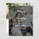 A modern and trendy all-in-one photo wedding invitation displaying your wedding information over one of your favourite pictures with a black transparent overlay and accented by an elegant white script, but with one eye on the budget.
