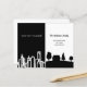 An elegant and minimalist moving annoucement card from a city life to a rural country life. Black and white with a city skyline and a country home. Personalise and add your new address and message to your family and friends.