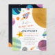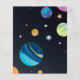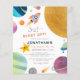 Let's celebrate the birthday boy! This planet-themed birthday invitation is perfect for any little one crazy about outer space! The budget invite features different brightly coloured planets, a rocket ship, a UFO, and stars. The text reads "3,2,1... Blast off!" with your child's name in big futuristic capitals. Your child's birthday appears in the yellow star. Customise with your event details and add an extra little note at the bottom in a hand-written font. This cute and colourful invitation is perfect for any fun-filled party. Easily customise for a little girl or gender-neutral look. The reverse features a dark blue galaxy image with planets in orbit. As part of the budget selection on Zazzle, this sheet isn't a standard invite size or paper quality. If you want this design on an invitation card you can find it in our store or use the Zazzle Make Machine to transfer it onto the product of your choice. Feel free to message me for any design-related queries, any help customising, or any custom order you have in mind! Check out the collection link below for matching items!