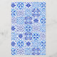This rustic design features a background pattern of blue and white watercolor Portuguese tiles, or azulejos. Personalise it with the names of the bride and groom in blue calligraphy script and the remaining text in a combination of sans serif, copperplate and italics on a white arch shape. A matching tile pattern appears on the reverse side.