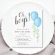 This budget twin boy's Baby Shower Invitation is decorated with watercolor blue balloons and green eucalyptus and says "Oh Boys!"