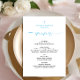 Celebrate your baby boy's baptism with our charming Baby Boy Baptism Menu, featuring elegant blue lettering and a delicate blue cross design. This menu adds a touch of grace and sophistication to your celebration, setting the perfect tone for this special occasion.