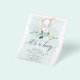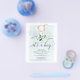 This adorable design features a sweet baby elephant sitting on a bouquet of blue and white florals with soft greenery. The background includes a hand painted blue watercolor texture. This design also features elegant fonts in a soft grey colour palette. See the entire collection fore more matching items!