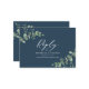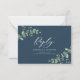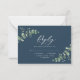 Budget Beautiful delicate elegant black, navy blue, white and sage green eucalyptus foliage wedding reply RSVP card. Part of a modern collection.