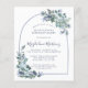 Dusty blue peonies and wildflowers decorate a pretty birthday invitation. Modern calligraphy and the arch add to the Boho Vibe.