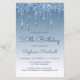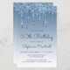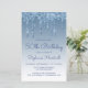This glamourous 50th birthday party invitation features a sparkly blue faux glitter drip border and blue ombre background. The editable birthday year and the name of the guest of honour appear in casual blue handwriting script, with the rest of the customisable text in blue sans serif font. The same blue glitter drip design appears on the reverse side. (NOTE: Envelopes are not included automatically with this budget invitation. To add envelopes to your order, please use the "Envelopes" drop-down menu.)