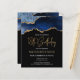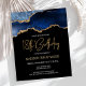 This trendy 18th birthday invitation features a watercolor image of an agate geode in shades of blue with faux gold highlights. The words "18th Birthday" appear in faux gold glitter in decorative modern handwriting font. Customise it with the name of the honoree in gold coloured text and the details in white. The same blue agate image appears on the reverse side.