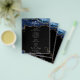 Blue and Gold Glitter Marble Wedding Menu. Faux gold foil stone striations. Script font highlights with easy to read serif name font. Easy to adjust for your own wedding needs. Make your own menu, use your own text to create an elegant yet cheap and affordable event menu. Easy to personalise. Custom menu paper sheets.