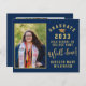 Budget Navy Blue Gold Bold Script 4 Photo Graduation Announcement Card. Congrats the graduate on their well-deserved success and celebrate them with this beautiful and budget friendly card. Please note that ENVELOPES ARE NOT included. The dimensions of this card are 4.5" x 5.6" and fit well into an A6 envelope 4.75” x 6.5” if you have. Or you can select an envelope option. All the texts are pre-arranged for you to personalise easily and quickly with your own details.