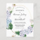 Modern floral design features dusty blue hydrangeas and ivory white roses decorating an oval gold frame. Modern typography adds to the Boho vibe. This item is part of the Modern Blue Hydrangea Collection.