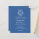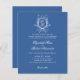 This wedding invitation features a classic and elegant design with a refined blue and white colour scheme. The centerpiece is a sophisticated monogram crest, adding a personalised touch. The invitation details are presented in an elegant script and serif font, combining traditional and timeless elements to create a beautiful announcement for your special day.