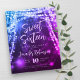 Elegant Sweet Sixteen Birthday Party invitation template w/ Blue Purple Sparkle String Lights motif & modern typography script.