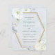 Elegant white hydrangeas and daisies create a pretty floral border around your wedding details. The soft blue watercolor background shows them off perfectly. This item is part of the Blue and White Watercolor Floral Wedding collection.