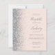 The left-hand edge of this elegant modern wedding invitation features a silver faux glitter border. The customisable text combines grey handwriting, copperplate and italic fonts on a blush pink background. Add additional details on the back, along with a QR code to help your guests visit your wedding website.