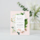 Summer botanical bridal shower invitation featuring watercolor tropical greenery against blush pink background. Your bridal shower details are displayed with stylish typography. As part of the budget selection here on Zazzle, these invitations do not come with envelopes nor do they fit snugly in a standard-sized envelope. The closest size is A6 but there will be a gap of approximately half an inch. If you don't mind the lack of snugness you could use such widely available A6 envelopes. Otherwise, this design can be transferred to a standard 5x7 format (which comes with envelopes) using the design transfer tool. As a rough guide, as of the time of writing, 100 budget invitations (including a volume discount) would cost around $39 whereas 100 standard 5x7 invites including envelopes would cost approximately $135. Your mileage may vary depending on Zazzle's available promo codes, site-wide sales, or changes in pricing.