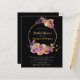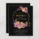 This Budget Black Bridal Shower Invitations - features bohemic floral boho golden wreath, pampas, fruits and golden drops on the black background. The reverse side of this invitation is laconic black.