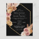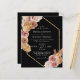 This Budget Boho Chic Desert Floral Wedding Flyer - features floral and golden geometric with dry leaves, twigs and flowers, pampas on the black background. The reverse side of the bridal invitation is also black.