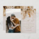 A romantic, modern Boho Flowers Photo Wedding Save The Date with photo realistic neutral dried floral bouquet in wheat, ochre and rust tones. Click to edit to customise this design with your photo and details.