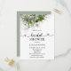 Postcard boho bridal shower invitation features greenery leaves and a cute script with hearts.