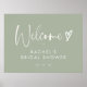 BUDGET Boho Sage Green Heart Script Bridal Shower Poster Sign