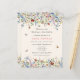 This is a delicate and budget friendly bohemian bridal shower invitation. The design features a colourful boho field of summery wildflower florals in pretty shades of blue, terracotta, pink, purple and yellow. The butterflies and bees add the finishing whimsical and elegant touch.