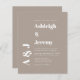 This simple, modern wedding invitation features minimalist white text on a taupe background. Add the names and monogram initials of the bride and groom in stylish bold typography and the details in sans serif font. The reverse side is a matching shade of solid taupe. NOTE: Envelopes are not automatically included with these budget invitations, so please remember to choose the "white envelopes" option!