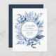 Create your own modern Save the Date announcement to alert friends, family, and coworkers about your upcoming wedding. Featuring watercolor foliage in shades of blue and navy with script and modern typography on white background.