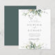 Beautiful affordable Save the date card featuring watercolor eucalyptus and gold leaves.
