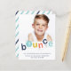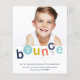 A modern kids birthday party invitation with colourful bounce typography and personalised age and photo. Click the edit button to customise this design.