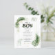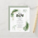 Wild forest themed giraffe, and elegant boys safari animal baby shower invitation featuring a giraffe, an elephant, gold foil and green leaves. Perfect for a boy's baby shower invitations