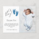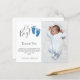 This budget Boy's Baby Shower Thank You Card is decorated with elegant script typography and cute blue glitter baby's feet.