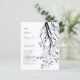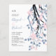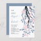BUDGET Dusty blue branch with blush pink flowers and initials wedding invitation with QR code for RSVP. A lovely design for your wedding featuring a cascading blue and black branch with blush pink blossoms. The back is of dusty blue colour and includes the QR code.