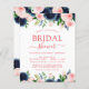 Budget Navy Blue, White and Blush Pink Modern and Elegant Floral Watercolor Spring Wedding Bridal Shower Invitations - includes beautiful and elegant script typography with modern botanical flowers and greenery for the special Bride to Be celebration.