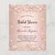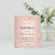 For an elegant bridal shower. A rose gold faux metallic looking background. Decorated with rose gold, pink faux glitter. Personalise and add the bride to-be's name and party details. The name and the text: Bridal Shower are written with a hand lettered style script