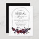 Budget Halloween October 31st Autumn Fall Dark Watercolor Dark Purple Wedding Bridal Shower Invitations on Black background - includes haunting and scary elegant script typography with modern Flowers and Bat Wings for the special Creepy Bride to Be day celebration.