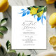 Announce your bridal shower in style with our budget bridal shower invitations. Featuring charming watercolor lemons and botanical leaves in shades of green, yellow, and blue, these invites are perfect for a citrus themed celebration.