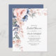 Announce upcoming bridal shower with a modern pink indigo blue watercolor invitation card the bride to be and the guests would love. Featuring beautiful botanical watercolor bloom and modern typography you can easily customise.