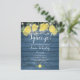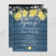Featuring lemons greenery and pretty string lights on a blue rustic wood background, this fun bridal shower budget invitation can be personalised with your special event information. Designed by Thisisnotme©