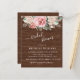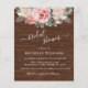 Budget Rustic Blush Pink Flowers with Wood Background Wedding Bridal Shower Invitations - features white handwritten and elegant script with rustic blush pink roses and flowers and lush greenery.