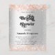 A faux silver metallic looking background. Decorated with rose gold faux glitter. Personalise and add a name and party details. The name is written with a hand lettered style script