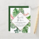 Budget Tropical Palms Watercolor Faux Rose Gold Foil Geometric Wedding Bridal Shower Invitations - includes beautiful and elegant script typography with modern botanical blush pink flowers and tropical Hawaiian greenery for the special Bride to Be celebration.