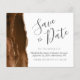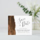 This elegant budget save the date card features a mocha brown watercolor agate border trimmed with faux gold glitter. The customisable text combines charcoal grey handwriting script, copperplate and italic fonts on a white background. The reverse side features a matching brown and gold agate design.