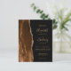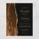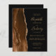 The left-hand edge of this elegant modern wedding invitation features a mocha brown watercolor agate border trimmed with faux gold glitter. The customisable text combines gold-coloured handwriting, copperplate and italic fonts on a black background. Add additional details on the back, along with a QR code to help your guests visit your wedding website.