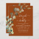 Budget Brunch and Bubbly Eucalyptus Burnt Orange Greenery Succulent Botanical Watercolor Emerald Green Spring Wedding Bridal Shower Invitations on white background - includes beautiful and elegant script typography with modern botanical leaves and greenery for the special Bride to Be celebration.
