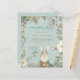 A value for money BUDGET alternative on a smaller size 4.5 x 5.6” semi-gloss 110lbs weight, which is of similar thickness to a postcard (however is not suitable to use as a postcard.). PLEASE NOTE there is ONE invite per sheet. Budget Bunny Boy Virtual Baby Shower Invitation. For when you can't be together in person, a virtual baby shower is the next best thing. This vintage style design has a cute bunny holding carrots peaking from behind florals and foliage. You can easily personalise all the text to your own requirements. A coordinating background is on the back. You can also change the fonts and text colours if you wish via the Click to Customise Further option as well as the background colours of either side.