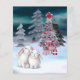 BUDGET Bunny Rabbit Christmas Tree Scene - a very cute Holiday Card from Ricaso featuring two little white rabbits cuddling in front of a Christmas tree adorned with red baubles and a poinsettia flower in a forest with snow