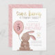 Cute hand-illustrated bunny rabbit holding a pink balloon with faux gold glitter dusting. The top of this design features "some bunny" in gold hand-lettered script with "is turning" alongside your little girl's age. The party details appear in modern typography with the date and time in a circular stamp layout. This sweet design is perfect for girls of all ages. Simply click on "Personalise this template" to change the number at the top and in the balloon, then edit the text to display your event information. Cards reverse to a pastel pink background with white and gold polka dots. As part of the budget selection on Zazzle, this sheet isn't a standard invite size or paper quality. If you want this design on an invitation card you can find it in our store or use the Zazzle Make Machine to transfer it onto the product of your choice. Message me through the button below for any design-related questions. For any order or delivery questions, you can contact Zazzle customer service at: https://www.zazzle.com/about/ask Visit our store for more birthday party invitations!